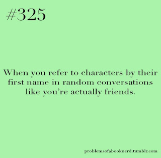 I absolutely love reading these little pictures made by Problems of a Book Nerd on Tumblr. Normally I don't read Tumblr, but I love this one! There are so many memes out there with "Book Nerd Problem #..." and they always crack me up. Here are some that apply to me and I can guarantee all of you. ;)